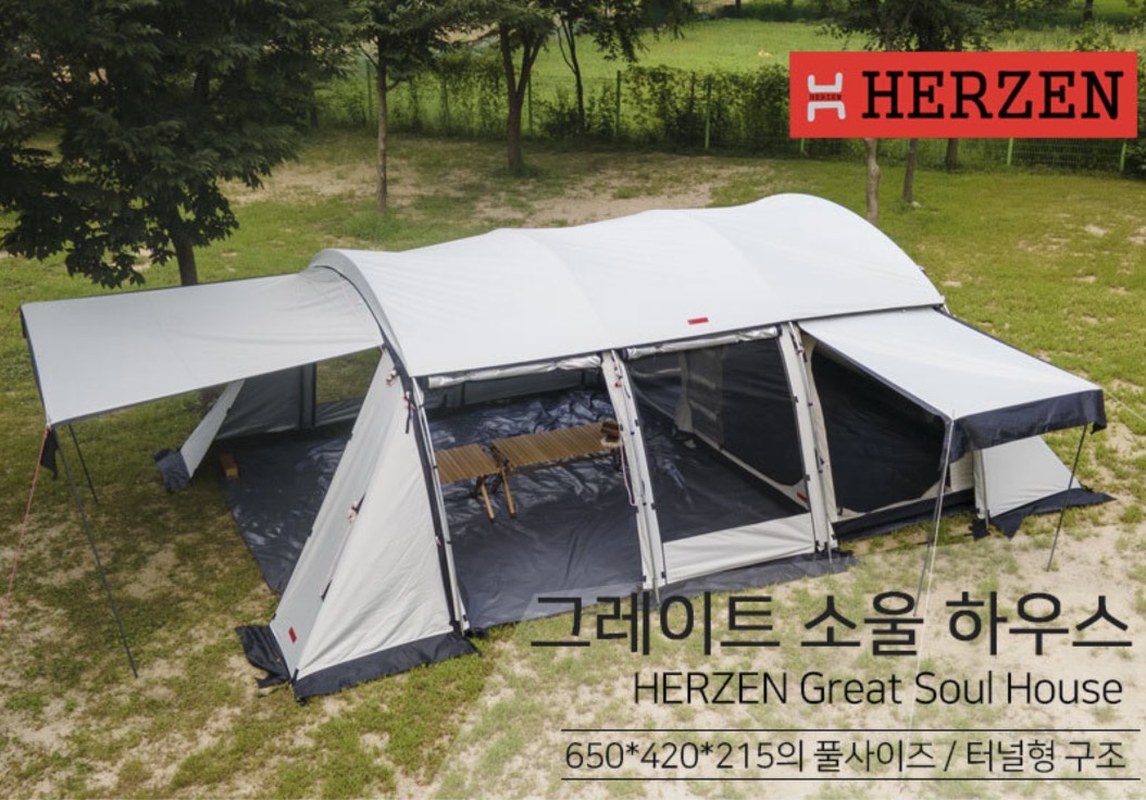 없어서 못 사는 파이어 쉘터 제조사인 에르젠에서 나온 초대형 터널 텐트 (또는 리빙쉘) 그레이트 소울 하우스. 이름하여 그소하.