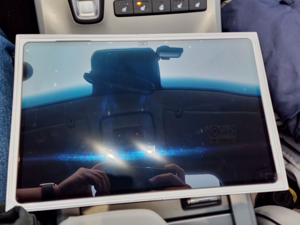 아래는 보호필름 부착 후. 부착 전과 비교해보면 천정등이 흐릿하게 보인다. 종이필름만큼은 아니지만 투명한 보호필름고 종일필름 중간 뜸 되는 저반사와 표면 느낌. 애플펜슬과 다르게 갤럭시 탭 테치펜은 덜 미끌거리기에 저반사 필름으로도 충분했다. (아이패드는 종이필름을 썼을때 필기감이 좋았다).